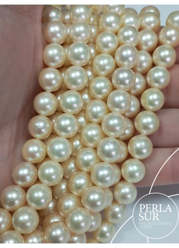 Round Golden cultured Akoya pearl strand. Cultured in Pinctada Martensii oyster.