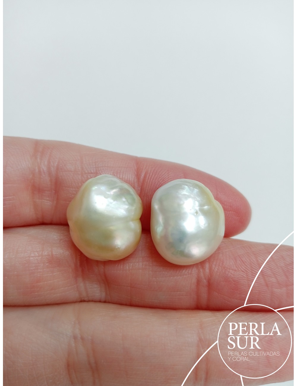 Undrilled. Natural color. The pearls are 14-15mm diameter.