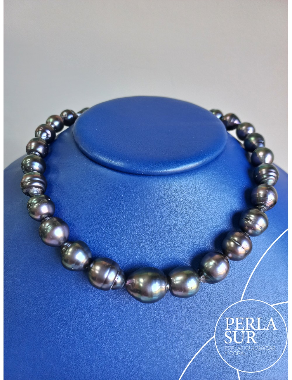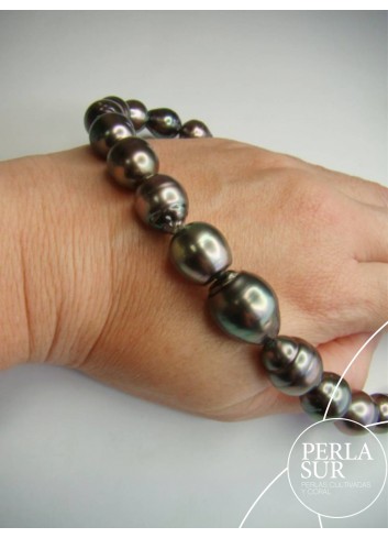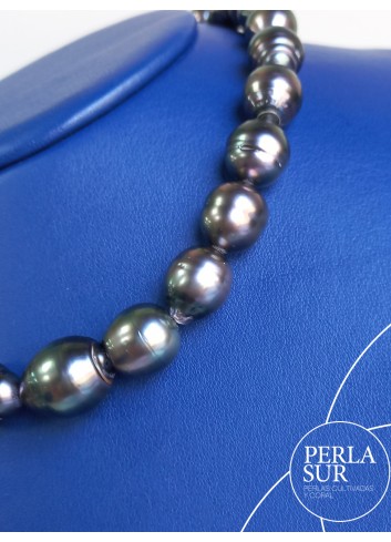 Collar de perla Tahití Barroca. 31 perlas desde 9,9 a 14,7mm. Pesa 399k. Mide 42,5 cm. Cierre no incluido.