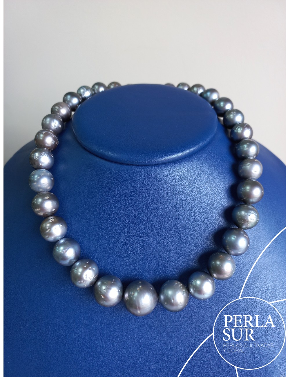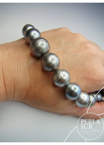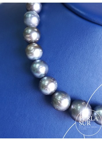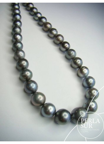 Collar de perla Tahití redonda. 33 piezas desde 10,9 a 16,2mm. Pesa 494,8k. Mide 42 cm. Cierre no incluido.